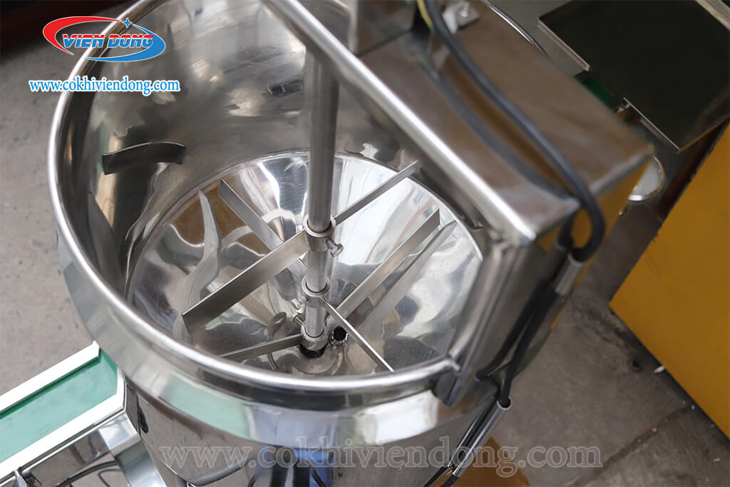 Đối với nguyên liệu sệt hoặc hỗn hợp, máy thường được trang bị bồn cấp liệu hoặc bồn khuấy nhằm đảm bảo nguyên liệu luôn đồng đều trong suốt quá trình chiết rót, tránh hiện tượng lắng cặn hoặc tắc nghẽn.