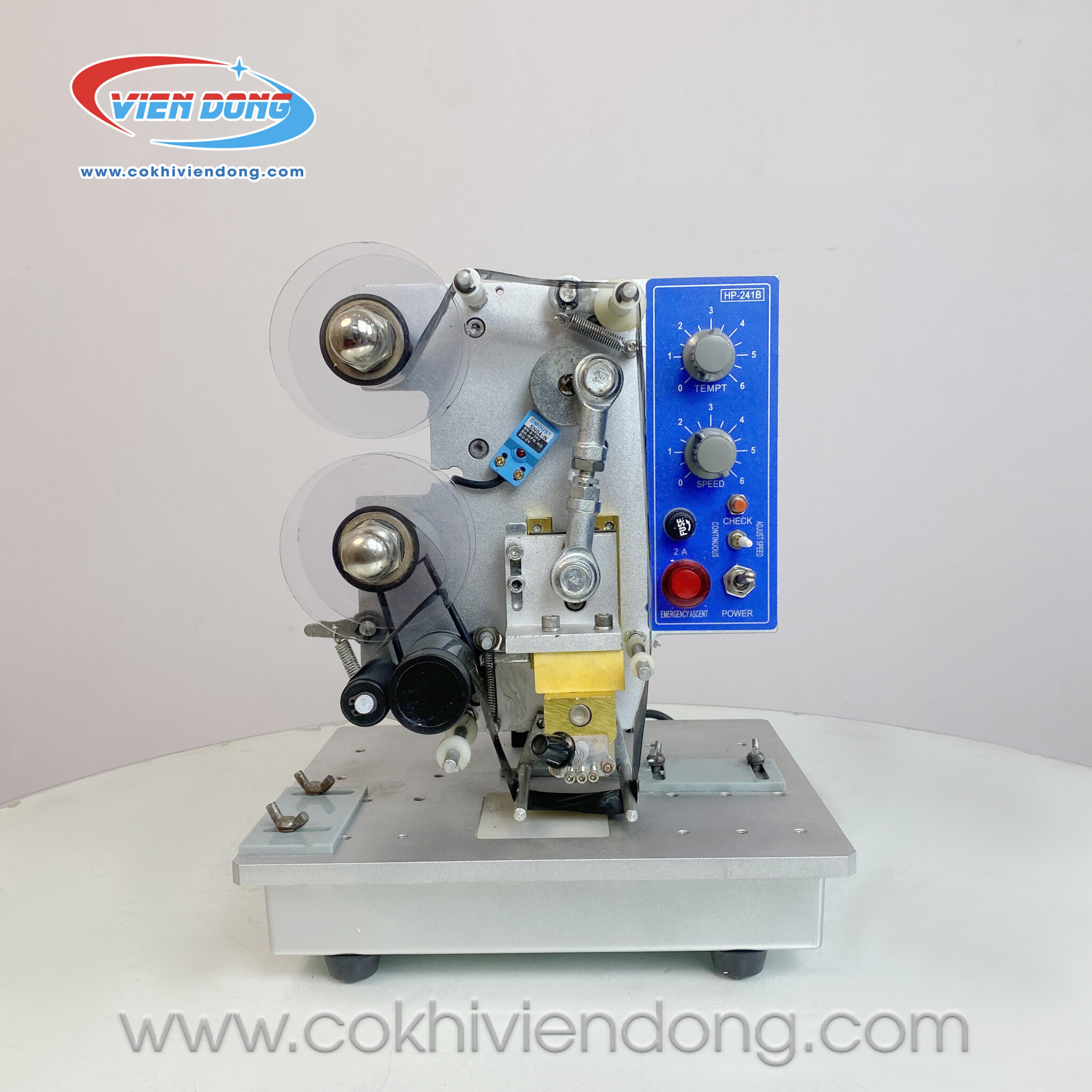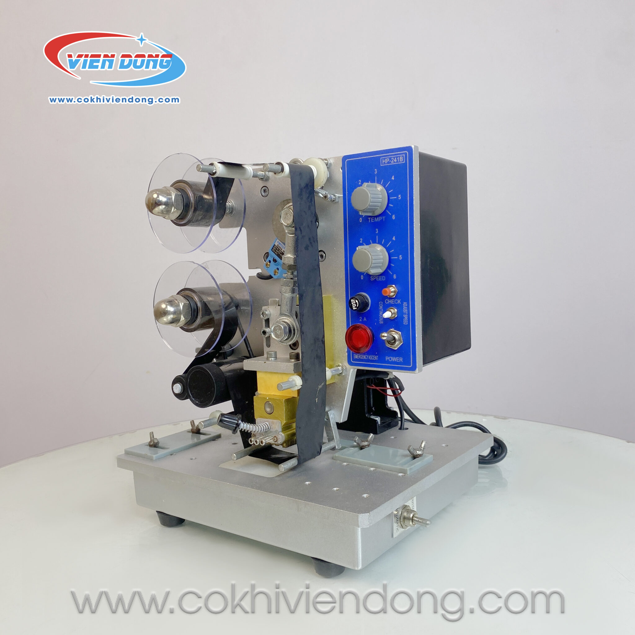 Trọng lượng 11kg và kích thước trung bình giúp máy vận hành ổn định, hạn chế rung lắc khi hoạt động liên tục. So với DY-8, HP-241B vượt trội về tốc độ, độ đồng đều và khả năng in nội dung dài, rất phù hợp cho các doanh nghiệp cần máy in date công nghiệp bán tự động.