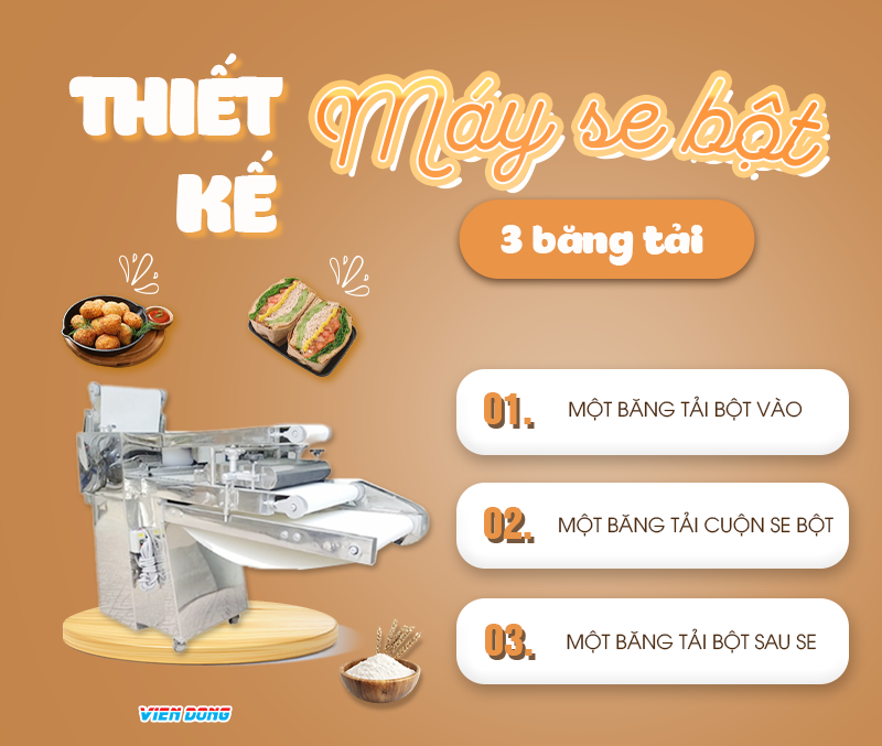 Việc đầu tư không chỉ giúp giảm sức lao động mà còn mang lại sự đồng đều cho từng mẻ bánh. Tùy theo quy mô và nhu cầu, bạn có thể lựa chọn máy se bột 1 băng, máy se bột 2 băng, máy se bột bánh mì 3 băng hoặc máy se bột 1 băng 1 người làm để tối ưu hiệu quả sản xuất. Để có lựa chọn tốt nhất quý khách có thể liên hệ với Viễn Đông để được tư vấn chi tiết về từng dòng máy.